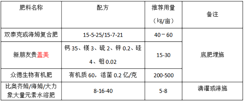 (2)推荐施肥套餐(根据目标产量、地域、品种、树势、树龄、地力等适当调整)