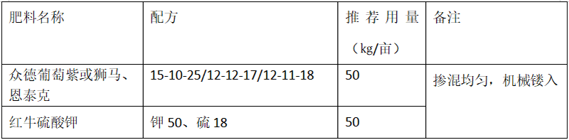 (2)推荐施肥套餐(根据目标产量、地域、品种、树势、树龄、地力等适当调整)